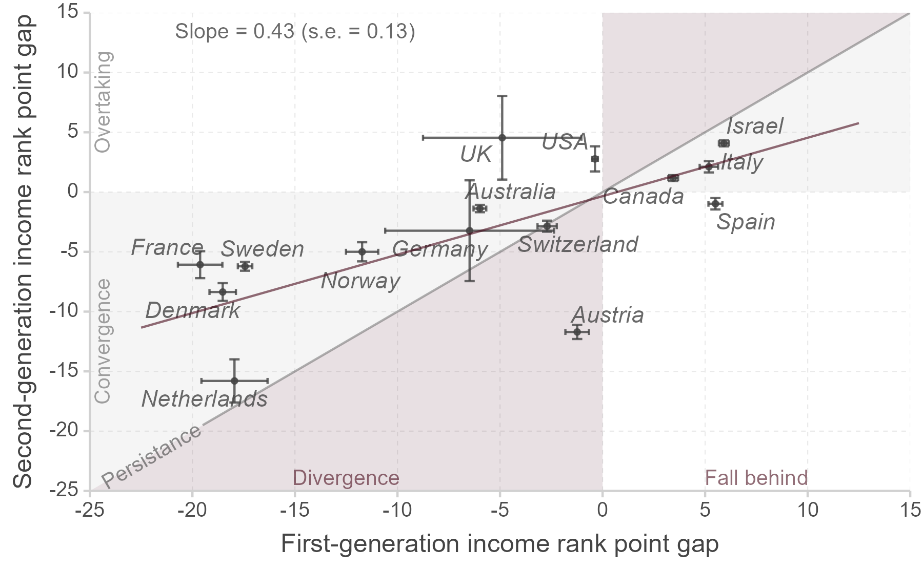 Intergenerational mobility of immigrants in 15 destination countries