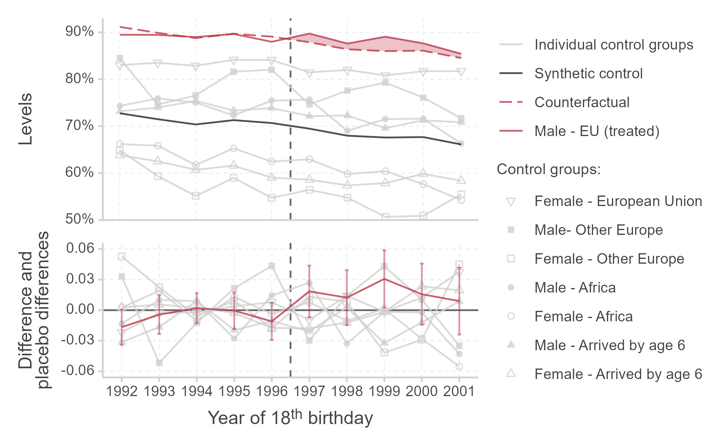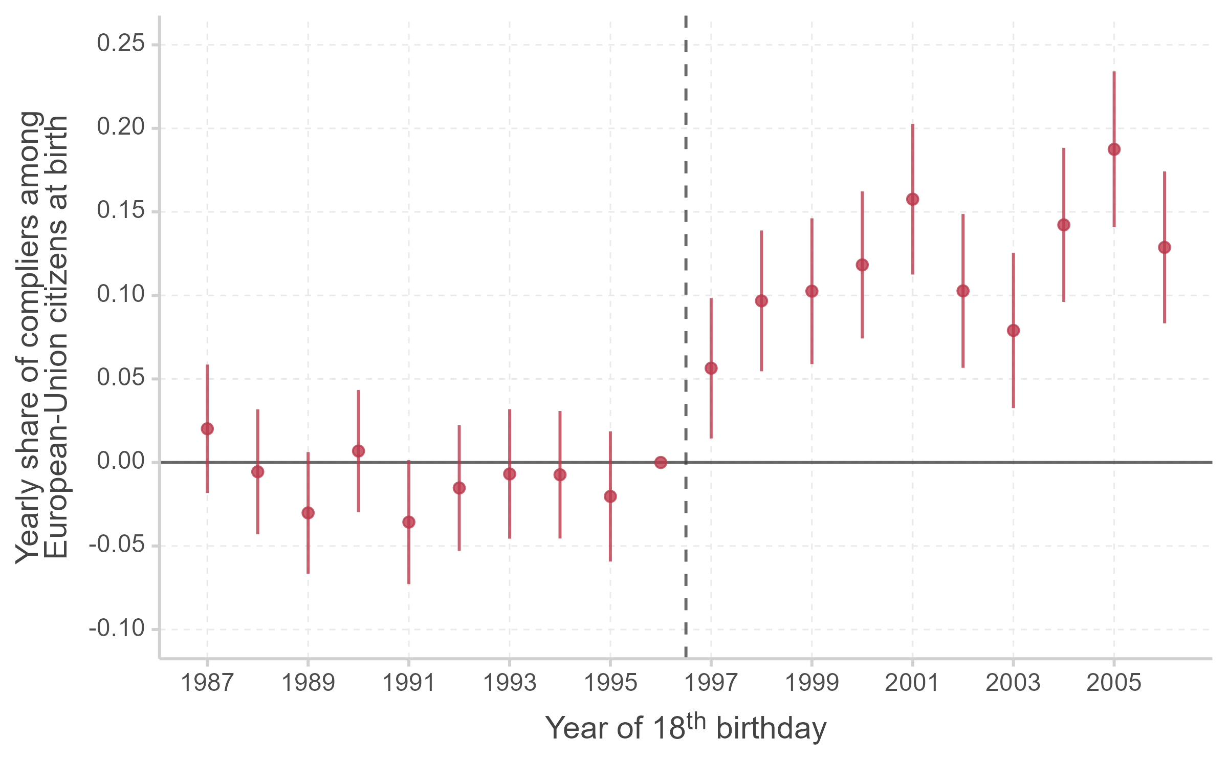 We examine how changing the costs of acquiring citizenship translates into naturalization decisions for second-generation immigrants, and the effect of naturalization on their labor market outcomes. We exploit the abolition of mandatory military service in France as an exogenous reduction in the cost of citizenship for men. In line with the predictions of our theoretical framework, we find that the reform induced a jump in male naturalization rates, entirely driven by European Union citizens. Using a Synthetic Difference-in-Differences, we show that the probability of employment for EU males consequently increased by 1.7 percentage points, through a reduction in inactivity rather than unemployment. We provide suggestive evidence that this effect is mainly driven by an increase in public sector employment and a reduction in self-employment.